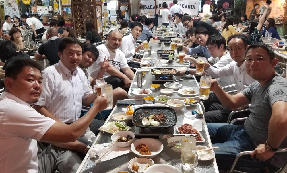 2018年7月21日 大分地域青商会 幹事会 大繁盛、姜大樹直前会長のお店牛楽にて。 本人は営業中にも関わらずメンバーやお客様より先にドロン… いつもの事ですが。 エキサイティングキャンプ動員中。 夏イベントはビアガーデンからパダモイムに変更。 大分も頑張ってますよ! その様子はFacebookで。